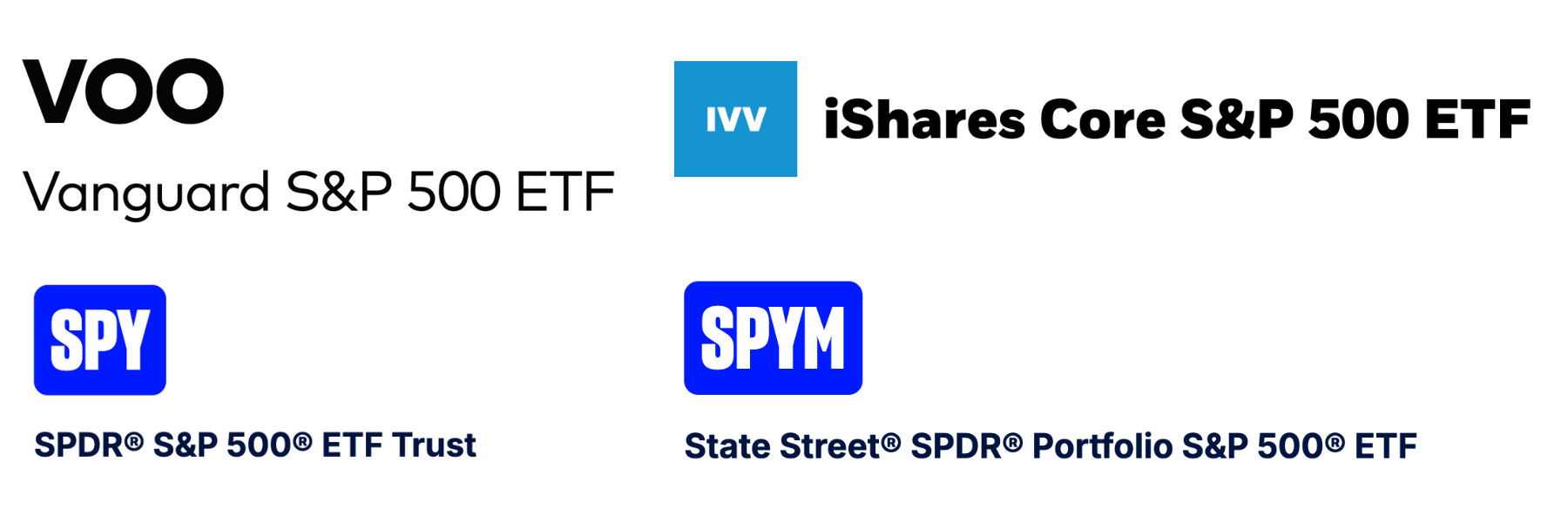 SPYM (recently changed from SPLG). State Street’s SPDR low-cost S&P 500 ETF. The lowest expense ratio of the bunch, but less popular and somewhat smaller than VOO or IVV.