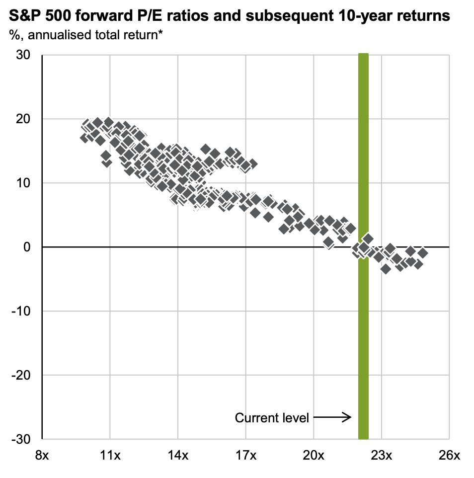 Markets don’t consistently deliver double-digit growth over the medium term and are unlikely to provide anything close to that when valuations are so high.